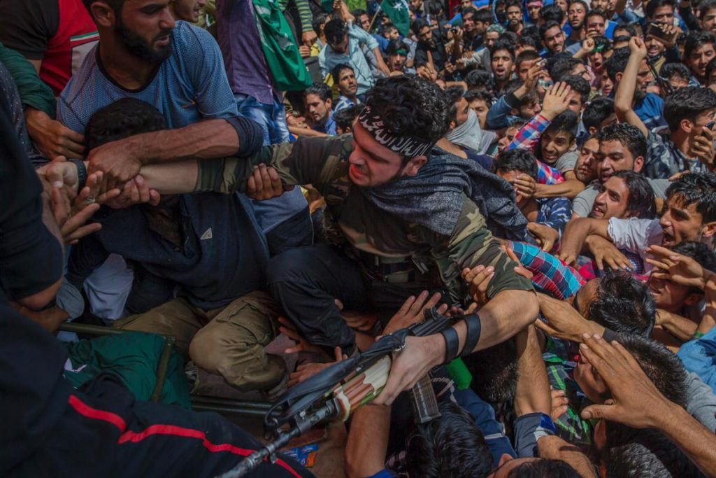 کولگام// جنوبی کشمیر کے کولگام میں گزشتہ روز جاں بحق ہوئے جنگجووں کی نمازِ جنازہ میں ہزاروں لوگوں نے شرکت کی ہے اور جنازہ گاہ کیلئے جگہ کم پڑنے اور سوگواروں کے دیر تک آتے رہنے کی وجہ سے دونوں جنگجووں کی نمازِ جنازہ کئی کئی بار پڑھی گئی۔اس دوران ایک جلوسِ جنازہ میں جاں بحق جنگجووں کے مسلح ساتھی نمودار ہوئے اور اُنہوں نے ہوا میں فائرنگ کرتے ہوئے اپنے ساتھیوں کو سلامی دی۔یہاں سے چلے جانے سے قبل اُنہوں نے لوگوں سے اُنکی حمایت کرتے رہنے اور مخبری نہ کرنے کی اپیل کی۔