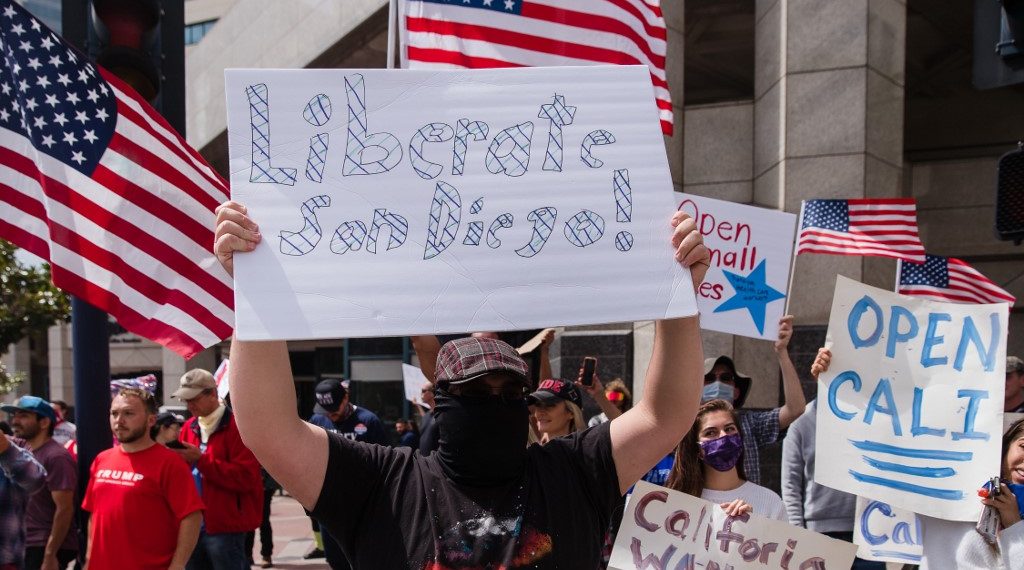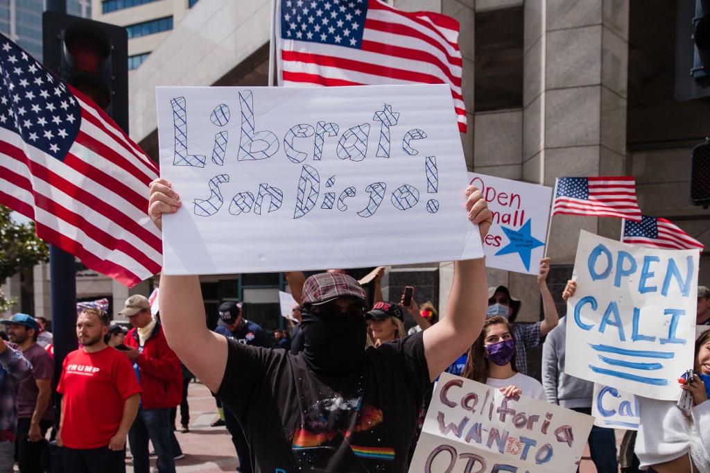 امریکہ میں جاری لاک ڈاؤن کے خلاف کئی شہروں میں مظاہرے بھی ہوئے ہیں جہاں سینکڑوں کی تعداد میں شہری گھروں سے باہر نکل آئے اور لاک ڈاؤن ختم کرنے کا مطالبہ کیا۔ مظاہرین نے ہاتھوں میں قومی پرچم اٹھا رکھے تھے جب کہ بعض کے پاس اسلحہ بھی تھا۔